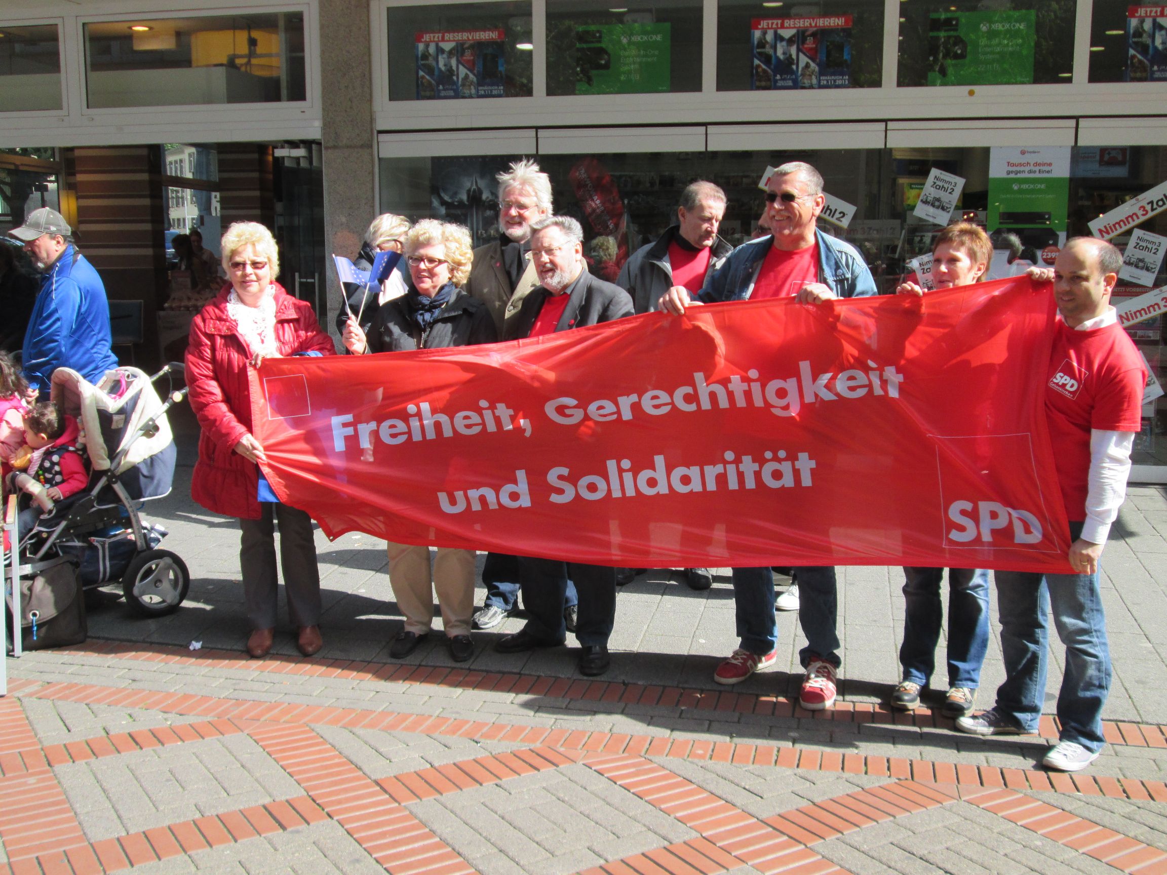 Mit dem traditionellen Ostereier-Verteilen hat die SPD Rotthausen im Stadteil den Aufschlag für den diesjährigen Wahlkampf gemacht. Danach unterstützen die Rotthauser Genossen den offiziellen Auftakt der SPD Gelsenkirchen auf der Bahnhofstraße. Hierzu hatten sich auch der Amtsinhaber und OB-Kandidat Frank Baranowski und die Kandidatin für die Wahl zum Europäischen Parlament, Gabriele Preuß, eingefunden. Zudem galt die Eröffnung auch den Wahlen zum Integrationsrat, die ebefalls am 25. Mai stattfinden werden.